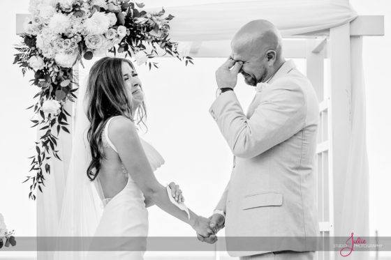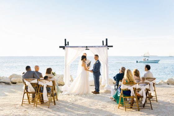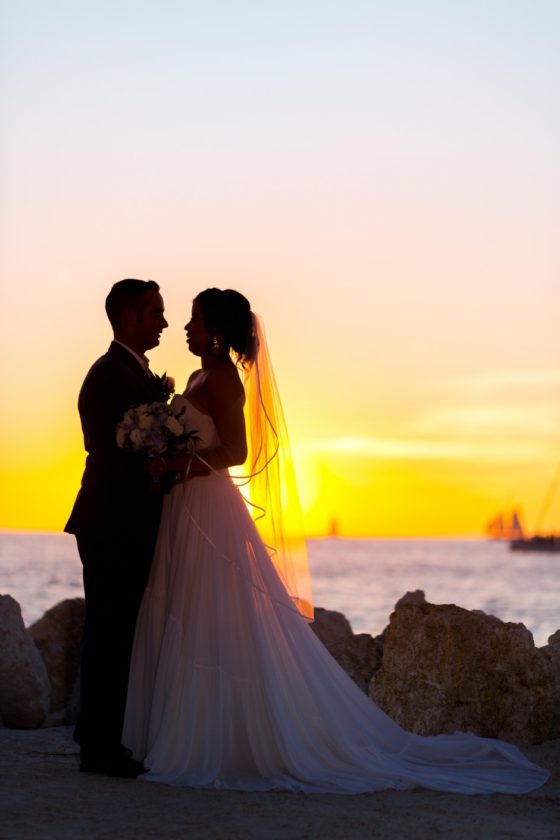 Joelle and Michael shared a close and intimate wedding ceremony at the historic Fort Zachary Taylor beach on the R2 location, followed by an upscale dinner at Latitudes restaurant. Their colors were white and baby blue, accented with darker hues of blue and navy in the party’s attire. It was a beautiful sunset wedding surrounded by their closest family, friends, and children.